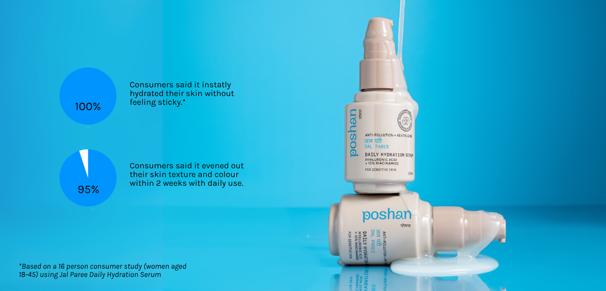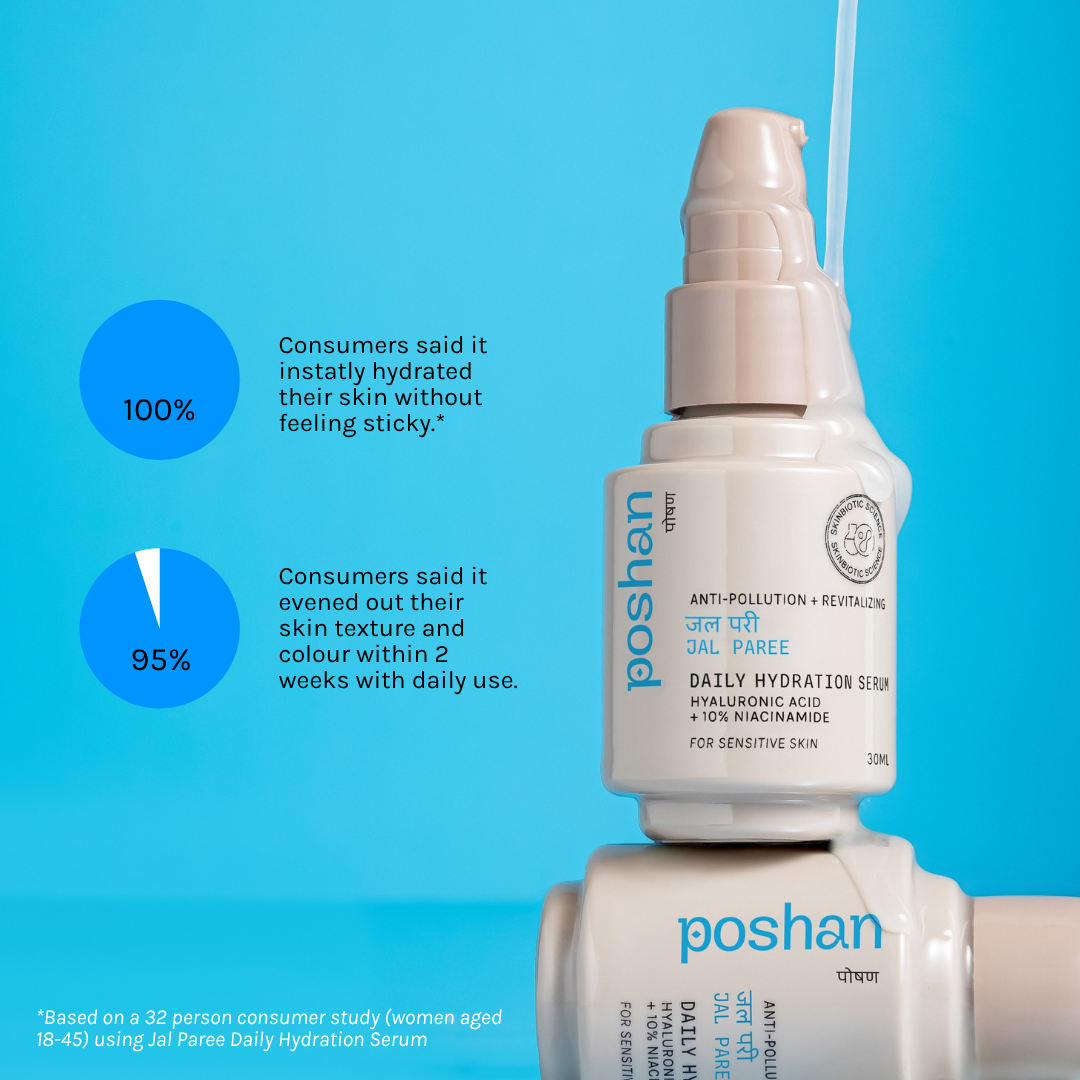 Jal Paree is a perfect match for Indian skin because its lightweight, water-based serum absorbs quickly without leaving a greasy feeling. Unlike heavy creams, it combines powerful humectants like hyaluronic acid that draw moisture in, without emollients and occlusives that may cause breakouts for oily prone Indian skin. This provides deep hydration and protection without clogging pores, making it ideal for our humid climate and varied skin types.