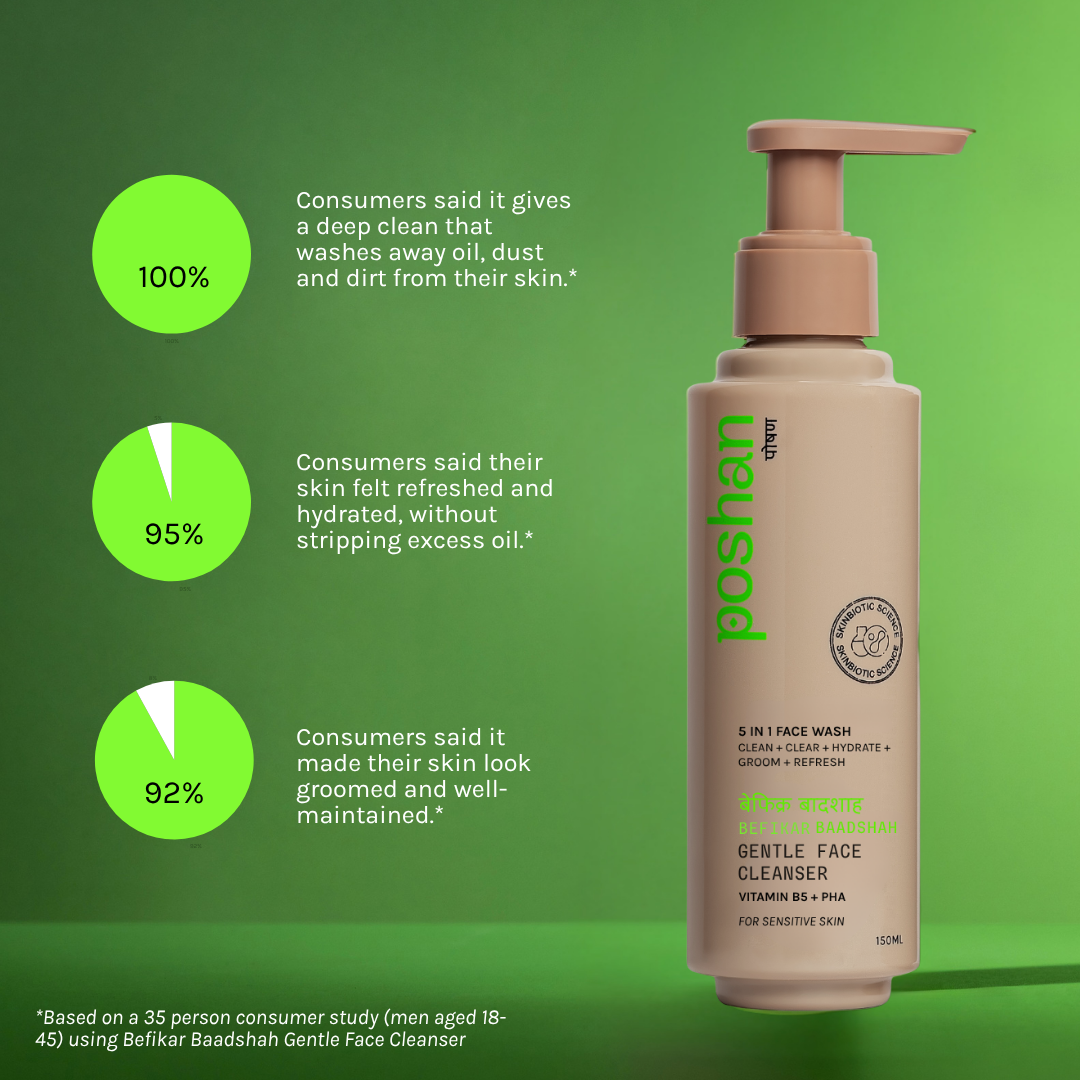 Most facewashes just strip your skin. Befikar Badshaah cleans deeply while keeping your skin balanced and hydrated — basically, it does the job like a Badshaah would.